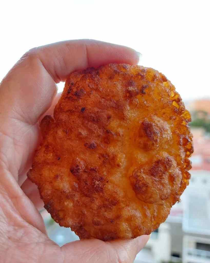 Pon un sartén con abundante aceite, coloca por cucharadas la mezcla, se van a expandir, voltea, y al estar listas coloca sobre papel absorbente.