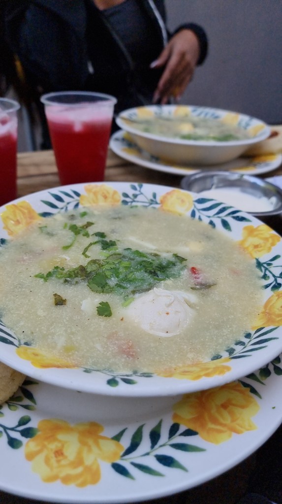 En nuestro viaje a #Merida en @kaffiacaffe nos consistieron con comida típica andina, uno de los desayunos fue pisca, acompañada con arepita de trigo y natilla