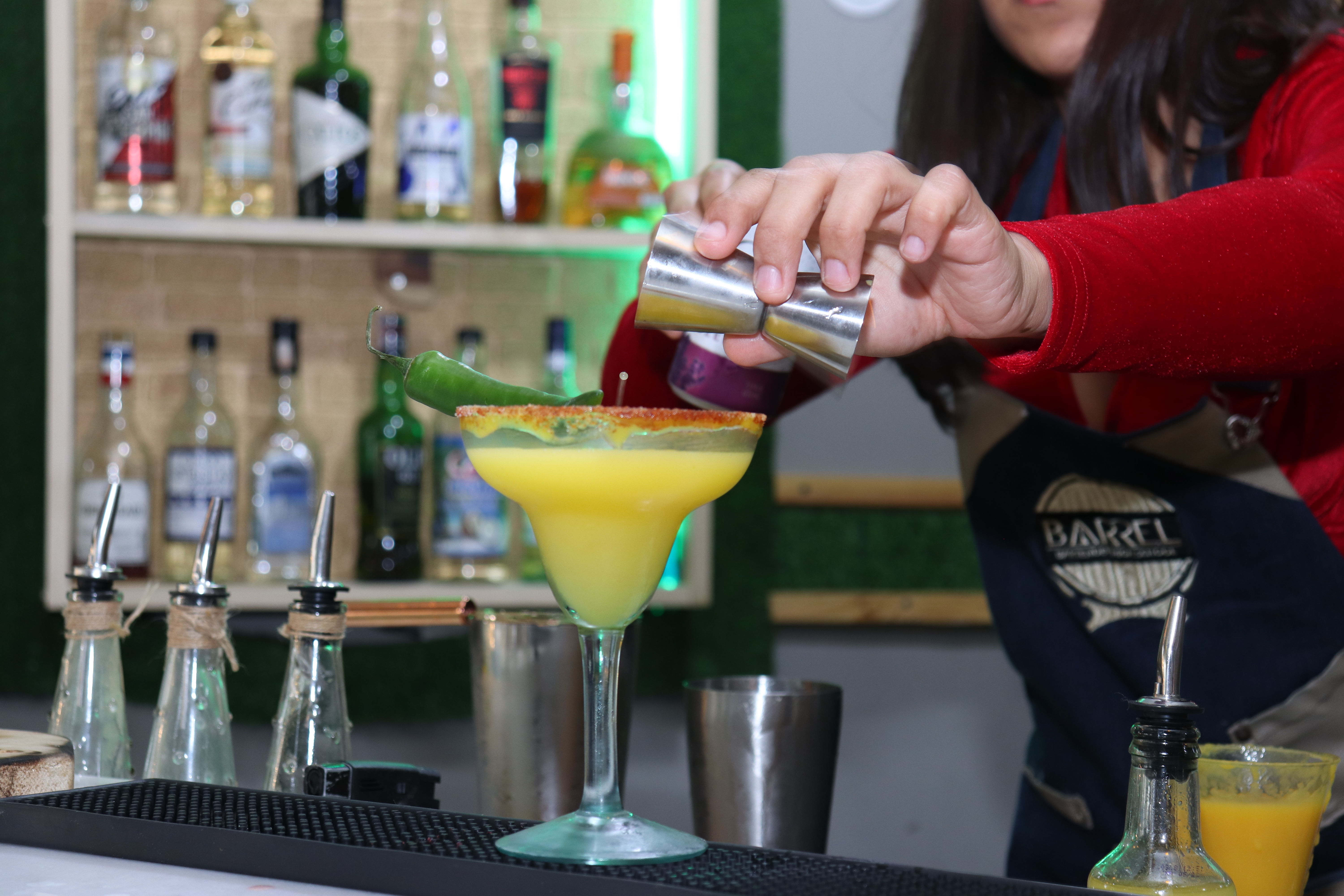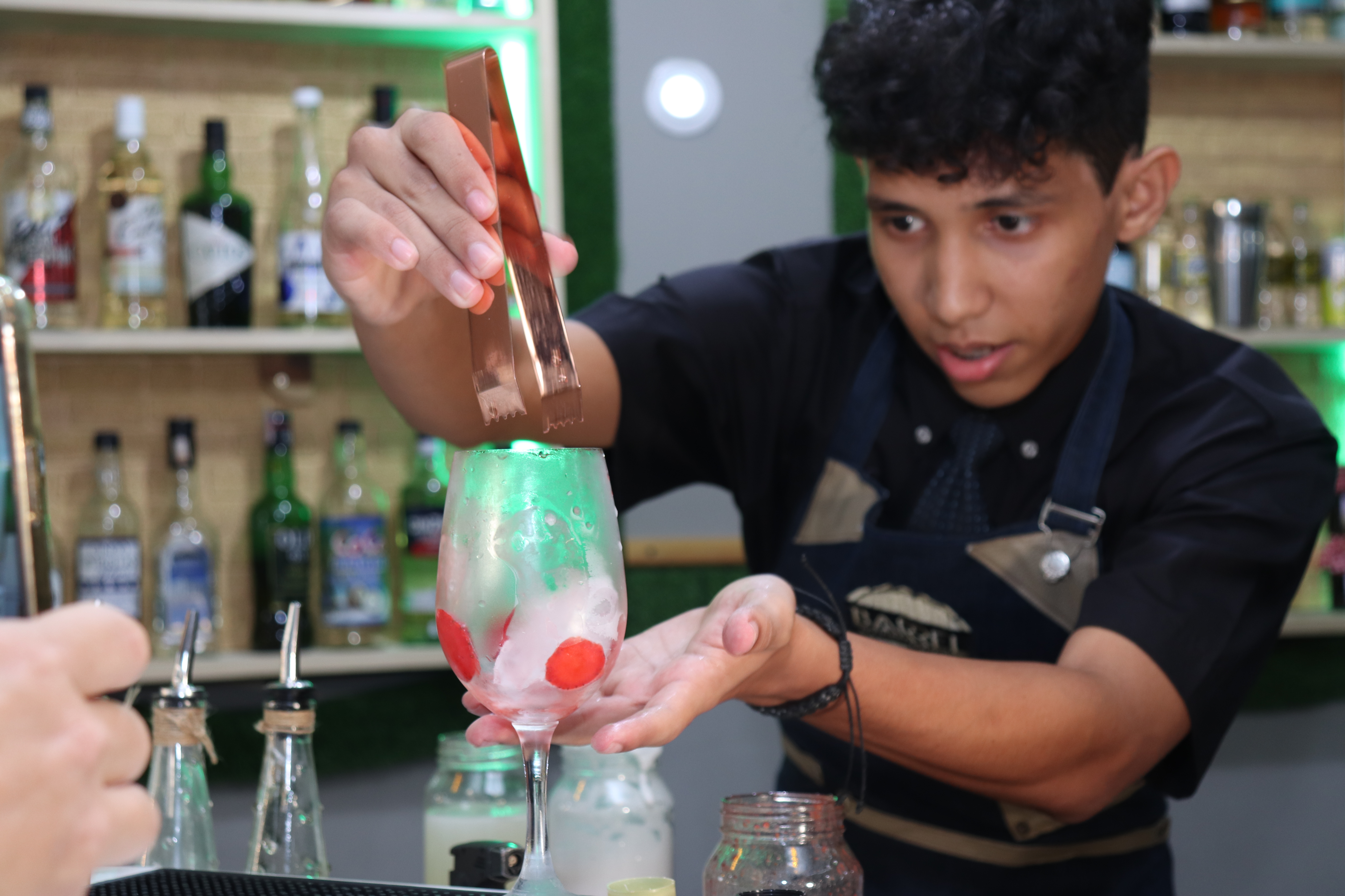 Hubo propuestas interesantes como el cóctel «Samchill», preparado por la alumna Samira Machak, quien deleitó con una mezcla de licor de mango con chile, tequila, ginger beer y zumo de mango.