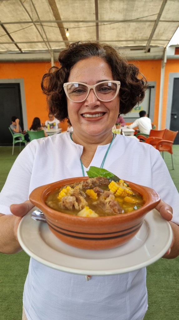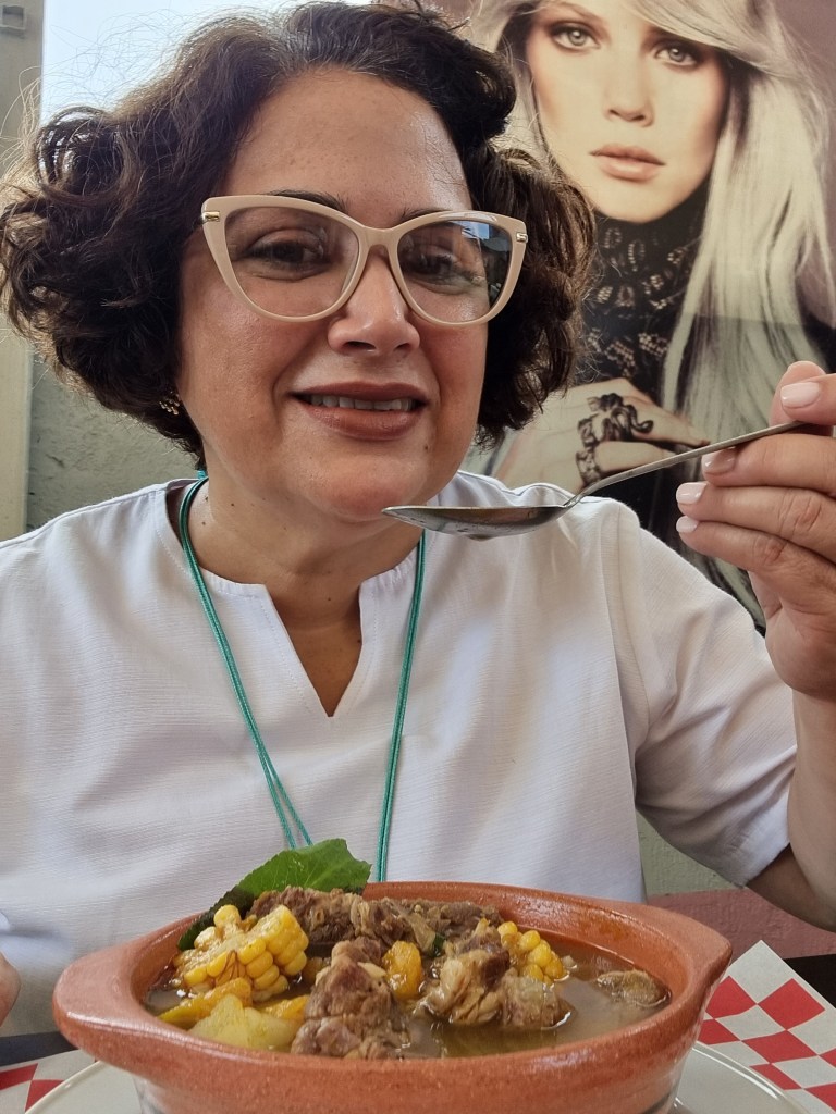 Estaba buenísima, de costilla con lagarto (osobuco), desgrasadita y todo…obvio acompañada con arepa.