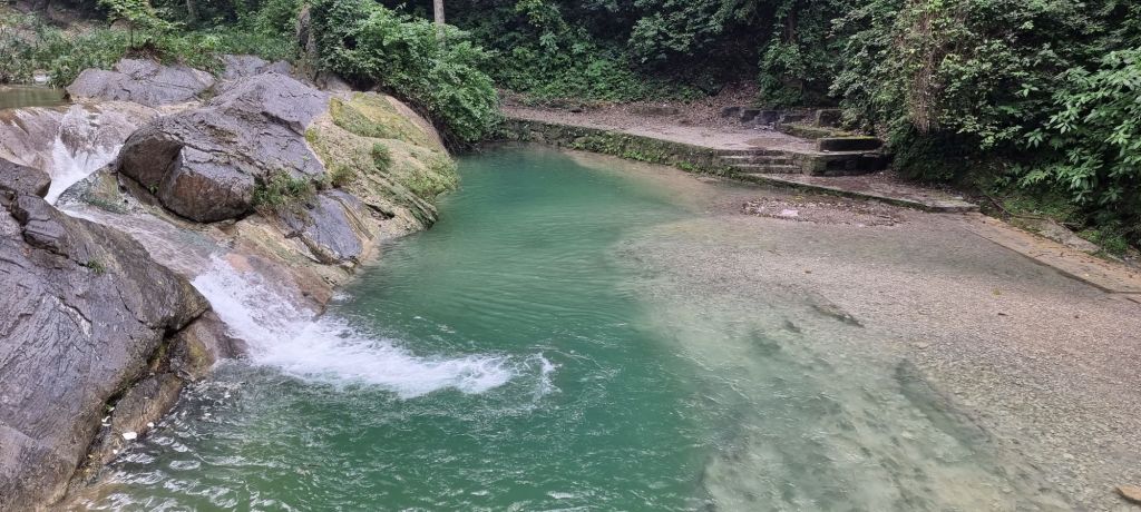 El Parque La Sirena tiene caminerías desde el estacionamiento hasta la cascada, así que es una gran ventaja, pues se hace ameno el recorrido. Vas subiendo y del lado derecho se observa el río que va cambiando de tonalidad. Azul, verde, turquesa, depende la profundidad de cada área que vas recorriendo.