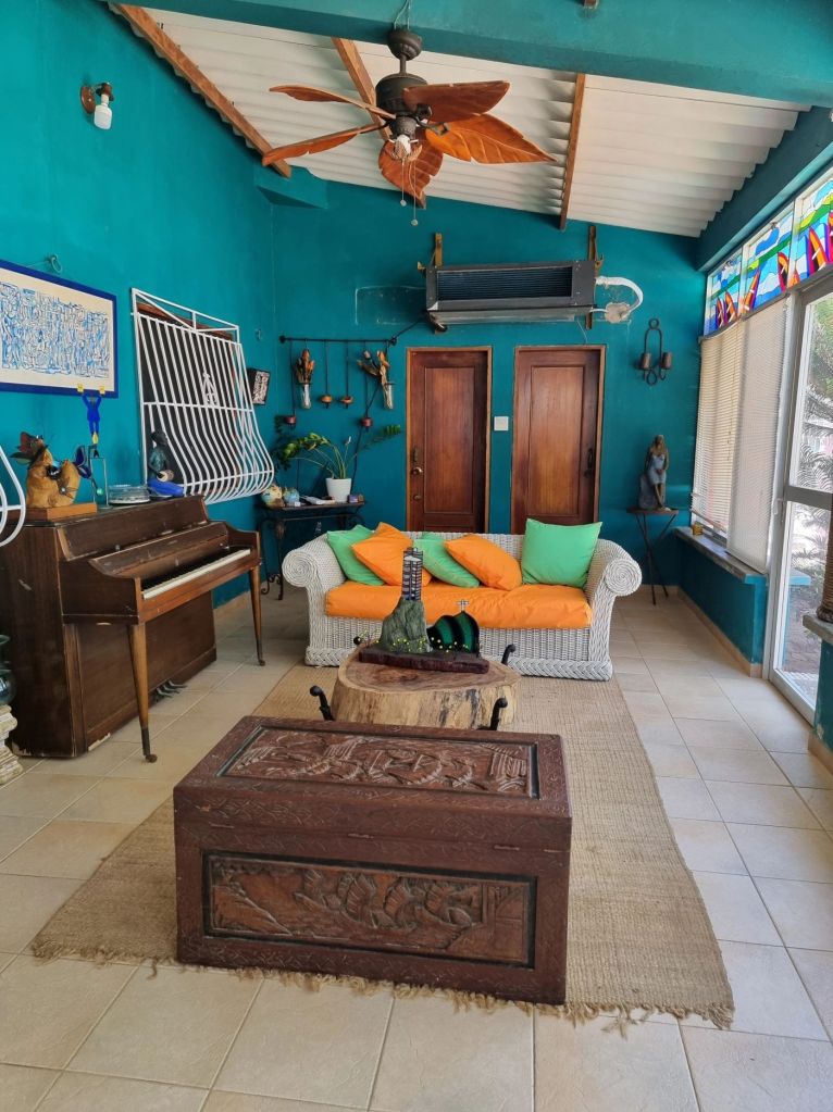 Abierta hacia el mar Caribe, con coloridos rincones que su propietaria decora con esmero, piezas de su autoría que realiza en su taller que se encuentra dentro de la Posada. Un lugar mágico en donde se conjuga la naturaleza y el arte en un sólo lugar.