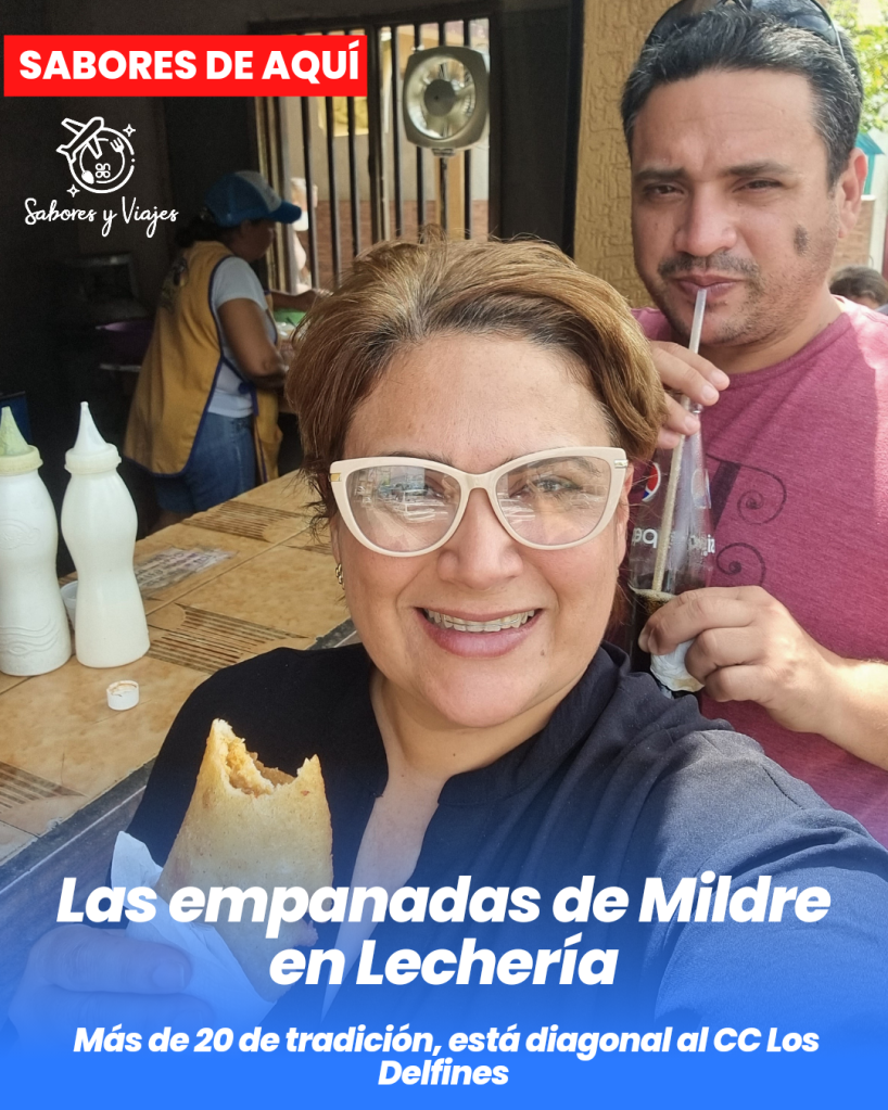 Las Empanadas de Mildre en Lechería. Tiene más de 20 años en un local frente a su casa ubicada en la carrera 7 de Rómulo Gallegos, diagonal al CC Los Delfines. Ofrece de pescado, carne, marisquería.