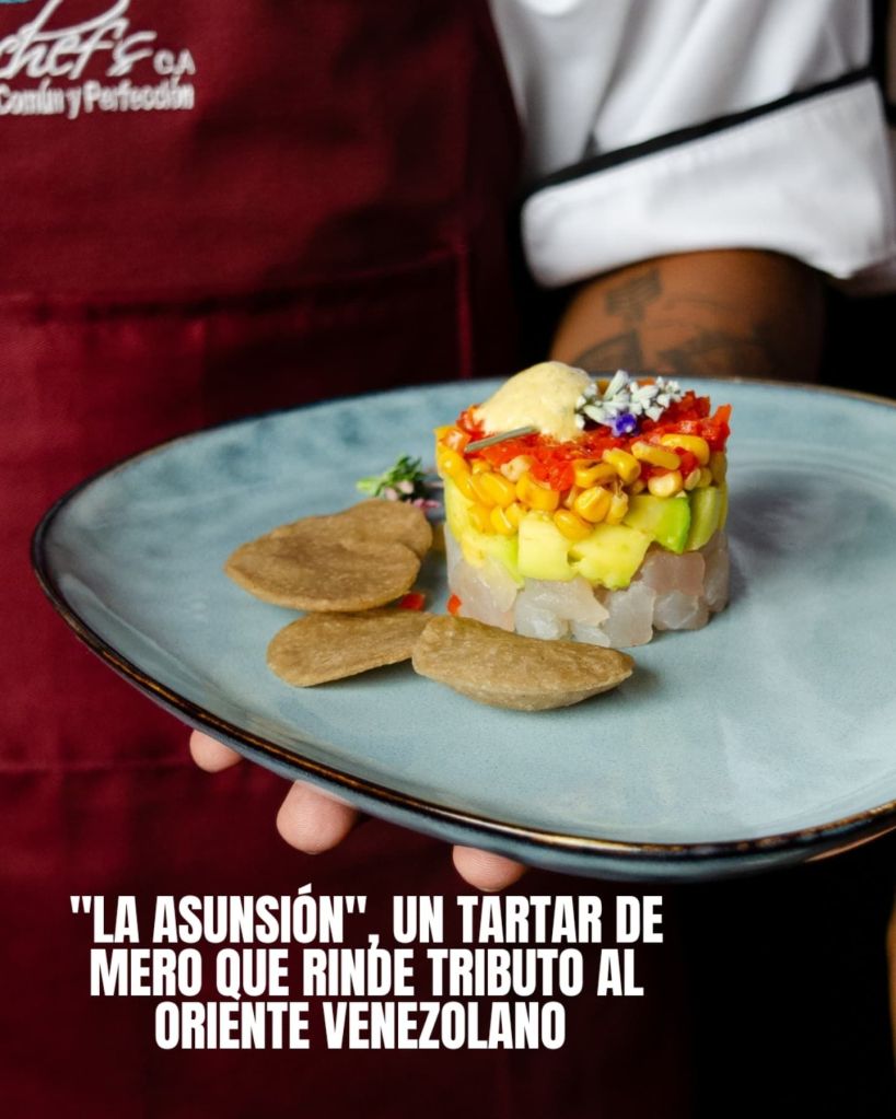 Luego de refrescar el paladar con las notas cítricas de la bebida, los sentidos se abrieron para sumergirse en “La Asunción”, un tartar de mero, combinado con aguacate, maíz, espuma de parchita, cilantro, acompañado con ocumo chino.