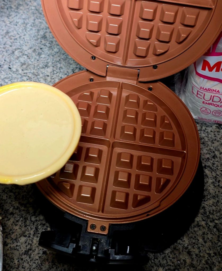 Precalienta tu wafflera (la mía la compré en Emko Design en Lechería) hasta que esté bien caliente.