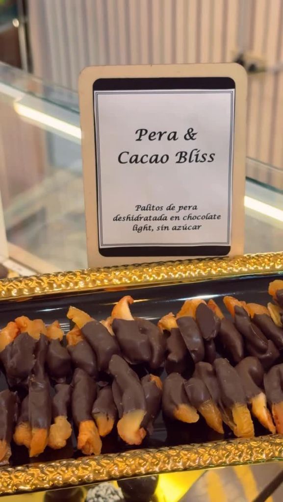 La oferta de Savura es diversa y creativa: desde barras de chocolate con diferentes porcentajes de cacao hasta bombones con ganache de ron, alfajores, tortas como la famosa “Dubai” y la irresistible “Matilda”, una explosión de chocolate que se agota cada tres días. También han innovado con productos saludables, como chocolates sin azúcar, sin gluten y sin lácteos, y sus emblemáticos palitos de pera deshidratada cubiertos con chocolate oscuro y blanco de leche de almendras, una alternativa saludable que ha conquistado a los clientes.